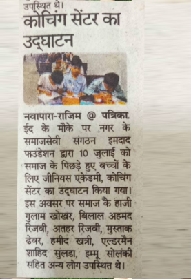 हमारी कोचिंग क्लास में CA Foundation और CG PSC की तैयारी के लिए विशेष मार्गदर्शन दिया जाता है। आर्थिक रूप से कमजोर छात्रों को बेहतर शिक्षा और संसाधन देने में आपकी मदद जरूरी है।